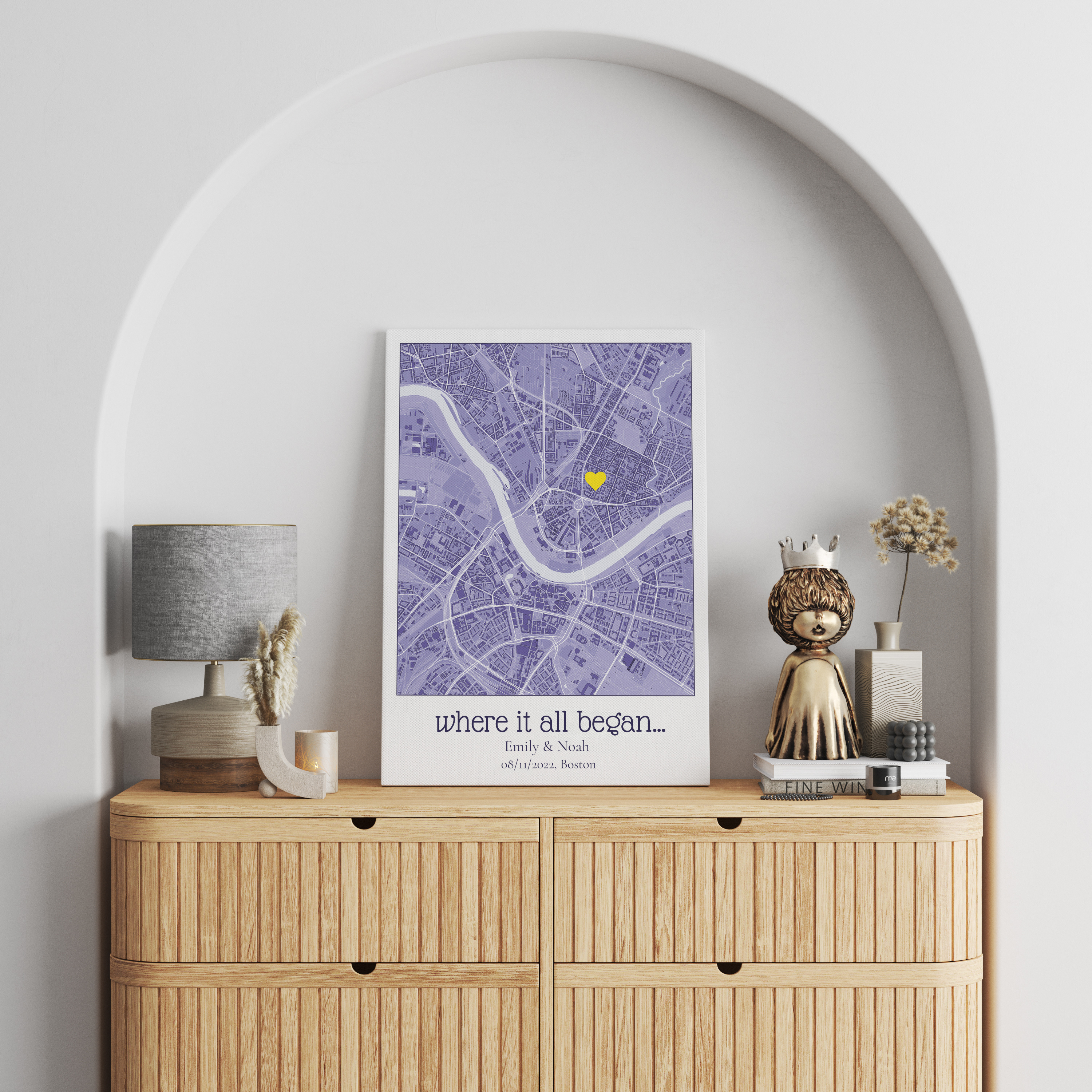 Celebrate meaningful places with a customizable map, perfect for special occasions.